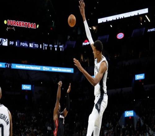 阿德巴约抛投命中,两队远投命中率下滑,文班亚马助攻瓦塞尔轰进三分球,文班亚马远投得分,马刺打出了8比2的攻势稳住局面,迈阿密请求暂停。哈克斯2罚全中,巴恩斯回敬外线得分,阿德巴约勾手取分,巴恩斯2罚全中还以颜色。威金斯失误,卡斯尔轰进三分球,文班亚马大帽米切尔,随后反击上篮得分。马刺重新取得11分领先,威金斯轰进续命远投,文班亚马大帽阿德巴约,阿德巴约回敬三分球,文班亚马2罚1中,阿德巴约远投三不沾,比赛时间走完。最终,马刺以107比101险胜热火,得以拒绝15分逆转。