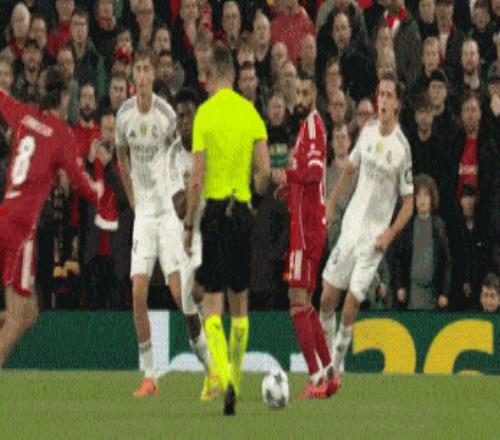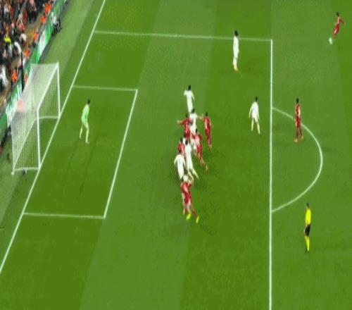 第32分钟,索博斯洛伊禁区外劲射,击中楚阿梅尼的手,利物浦众将索要点球,但裁判观看VAR之后认为是球打手,并未判罚点球。