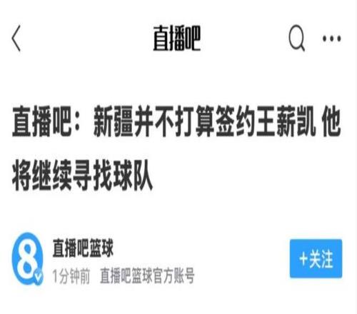 新疆男篮放弃签约王薪凯,是考虑了多个方面的因素。但对王薪凯来说,他没有能够在新疆男篮拿到一份合同,就只能去其他球队寻找机会了。不过由于之前在新疆男篮试训了接近两个月,各队基本上都已经确定了新赛季的阵容名单,而王薪凯又不是能力特别突出的球员。再加上新赛季的第一个球员转会窗口期很快就会开启,他基本上已经没有了去其他球队试训的时间,想要在这个窗口期里签约的难度非常大。在新赛季开打后,王薪凯想要拿到一份CBA合同的难度就更大了,新赛季有可能会无球可打。
