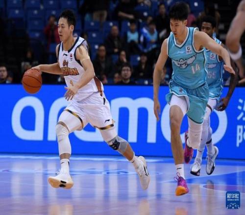 12月15日,青岛崂山啤酒队球员吕俊虎(右一)在比赛中防守四川丰谷酒业队球员左朕年。新华社记者 李紫恒 摄